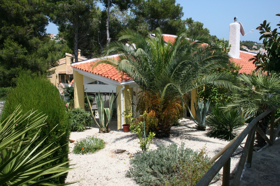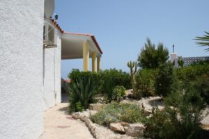 Wir pflegen die Anlage das ganze Jahr über liebevoll. Zwischen den Häusern finden Sie typische Pflanzen der Costa Blanca: Mächtige Agaven, schattenspendende Palmen und blühende Sträucher. Der Duft von Pinien liegt in der Luft – so riecht der Süden.