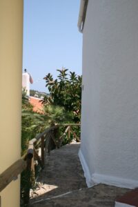 Die Architektur mit den strahlend weißen Wänden und den klassischen Terrakotta-Dächern fängt das Licht des Mittelmeers ein. Jedes Haus bietet gemütliche Ecken zum Verweilen – sei es für das Frühstück in der Morgensonne oder ein Glas Wein am Abend mit Blick über die Dächer bis hin zum Meer.