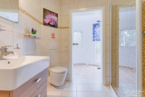 Die Schlafzimmer bieten viel Raum für Erholung und mediterranes Flair. Neben dem modernen Hauptbadezimmer verfügt dieses Haus über ein zusätzliches Gäste-WC – ein kleines Detail, das für entspannte Abläufe im Urlaub sorgt.